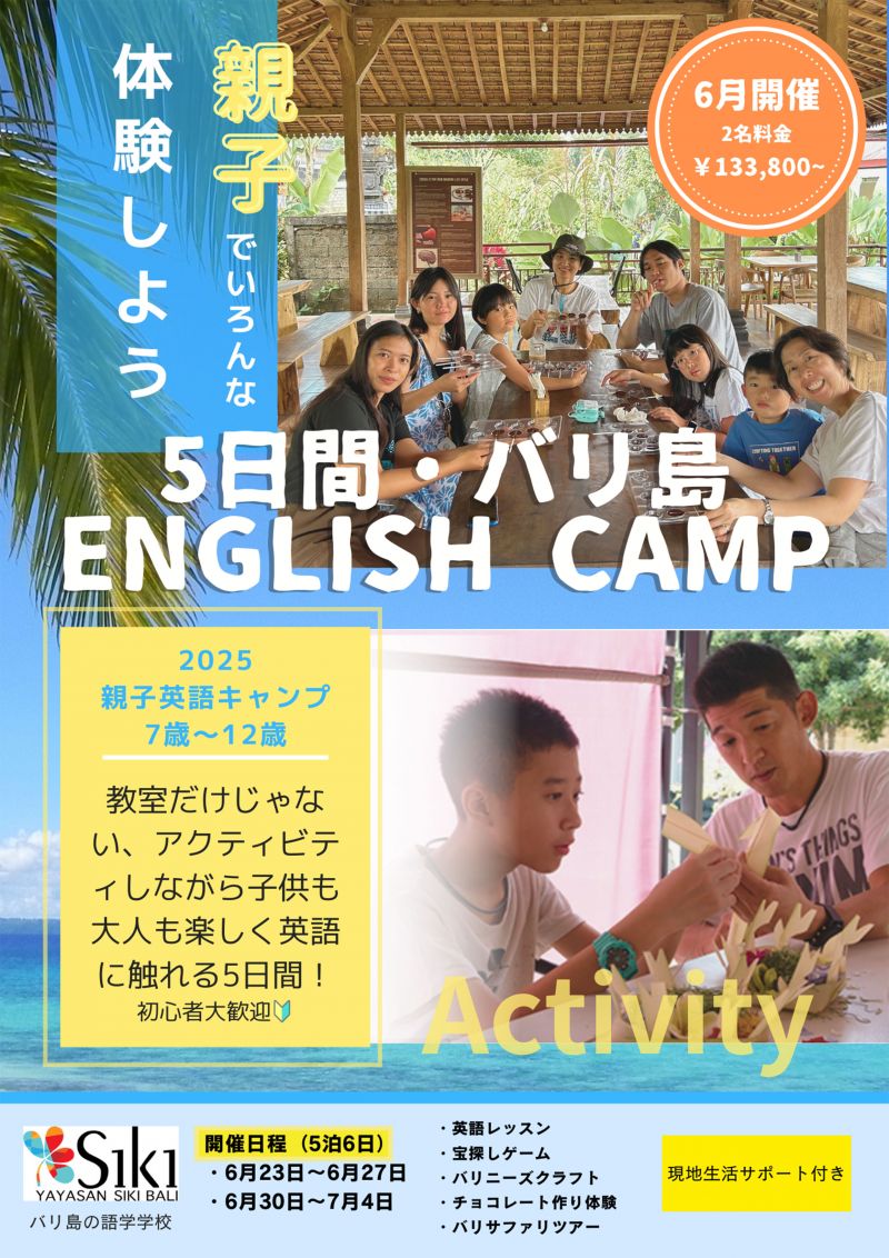 2025年6月23日〜6月27日&6月30日〜7月4日に、『親子英語キャンプ』をバリ島で開催します!
